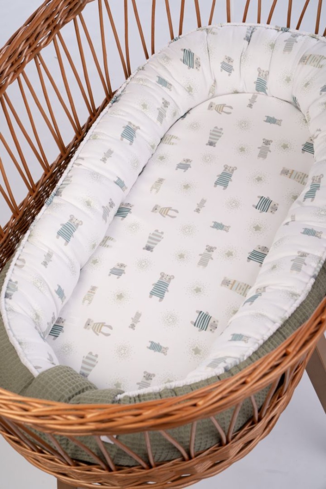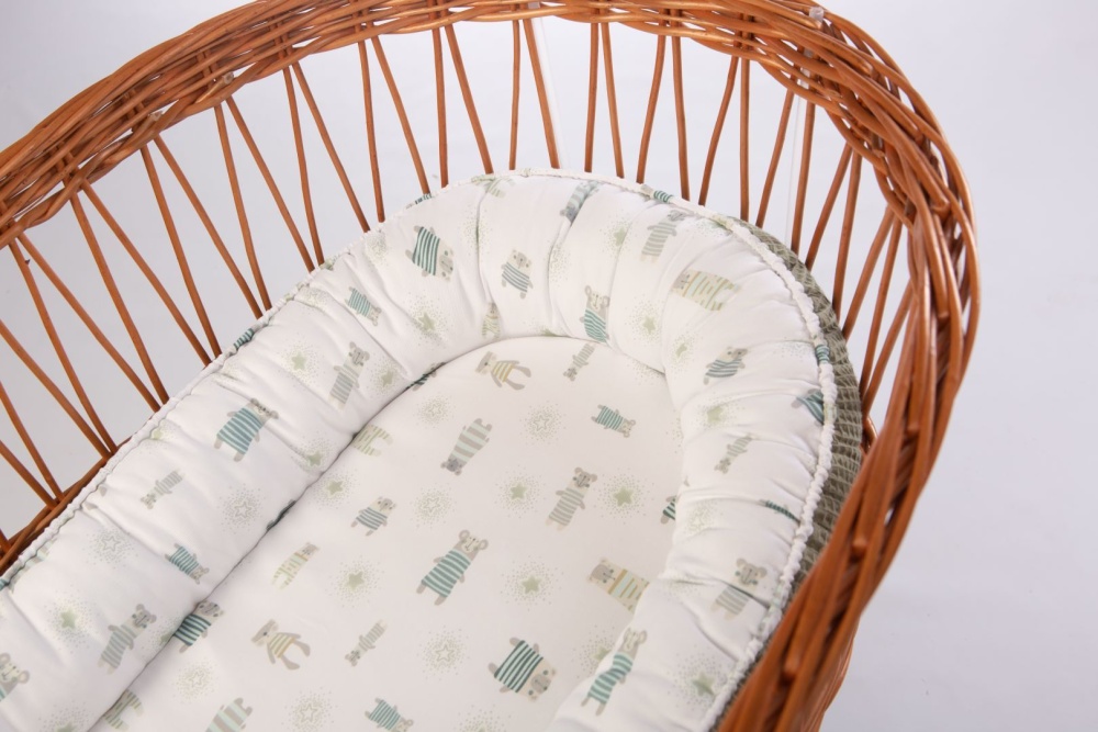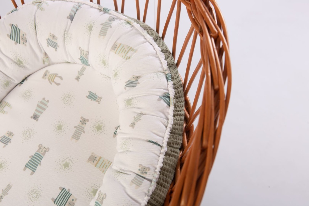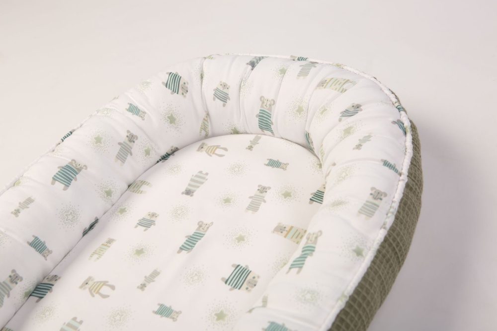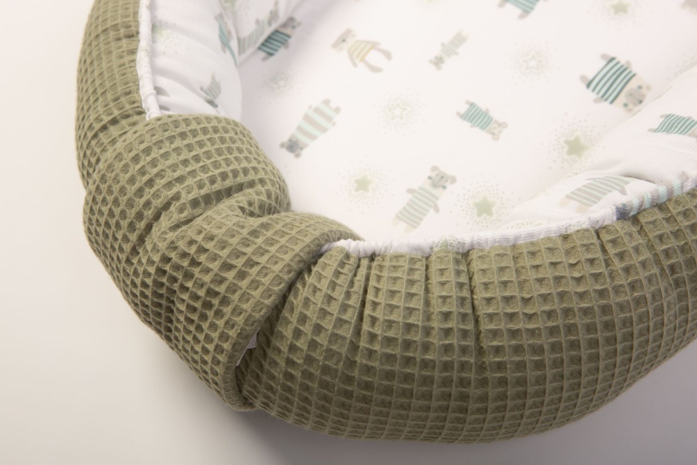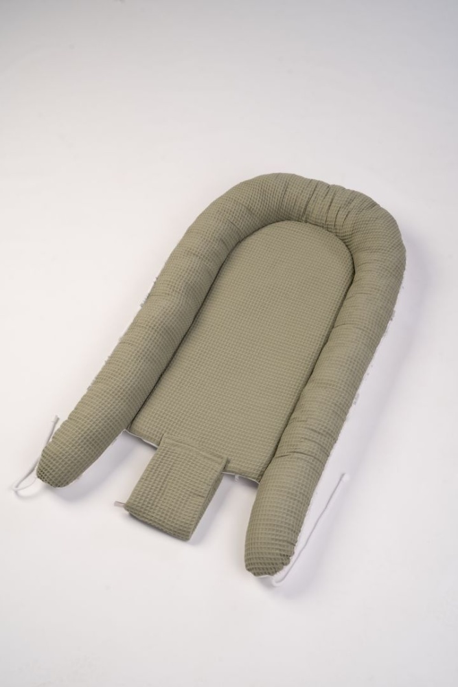 Unser Mionido Babynest aus weicher Bio-Baumwolle und hochwertigem Waffelpique schützt das Neugeborene ganz sanft durch die weiche und rahmende Umrandung. Leicht wie ein Kissen kann es ganz einfach transportiert werden, so dass das Baby immer ganz in der Nähe liegt. Dank der angebrachten Bändchen kann das Nest auch ganz leicht geöffnet werden. Die Größe ist genau auf das Maß unserer Stubenwagenkörbe angepasst, wodurch es sich perfekt als erweiterte Auspolsterung für den Schlafplatz eignet. Sowie all unsere Produkte werden unsere Mionido Babynester in unserer Manufaktur in Deutschland entworfen und gefertigt.