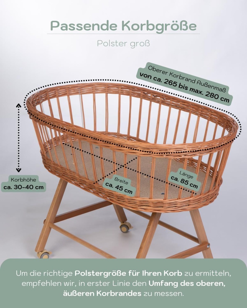 Dieses besondere textile Set eignet sich hervorragend für Ihren Stubenwagen und ist genau auf die Bedürfnisse eines Säuglings abgestimmt. Die weiche Baumwolle bietet einen kuscheligen Schlafplatz für Ihr Baby und schützt es gleichzeitig durch die weiche Wattierung des Polsters. Der im Set enthaltene Himmel sorgt durch den luftig fließenden Stoff für gedämpftes Licht und eine ruhige und wohlige Schlafatmosphäre, die besonders für ein Neugeborenes sehr wichtig ist. Das dazugehörige Mobile rundet das Gesamtbild Ihres Stubenwagens dekorativ ab. Da mit zunehmendem Alter die Wahrnehmung und das Interesse Ihres Babys für die Umgebung steigt, besteht auch die Möglichkeit den Himmel abzunehmen. Dieses komplette textile Set ist die ideale Ausstattung für Ihren Stubenwagen. Ein harmonisches Design, kombiniert mit dem Fokus auf die richtige und liebevolle Schlafumgebung Ihres Babys im Stubenwagen.