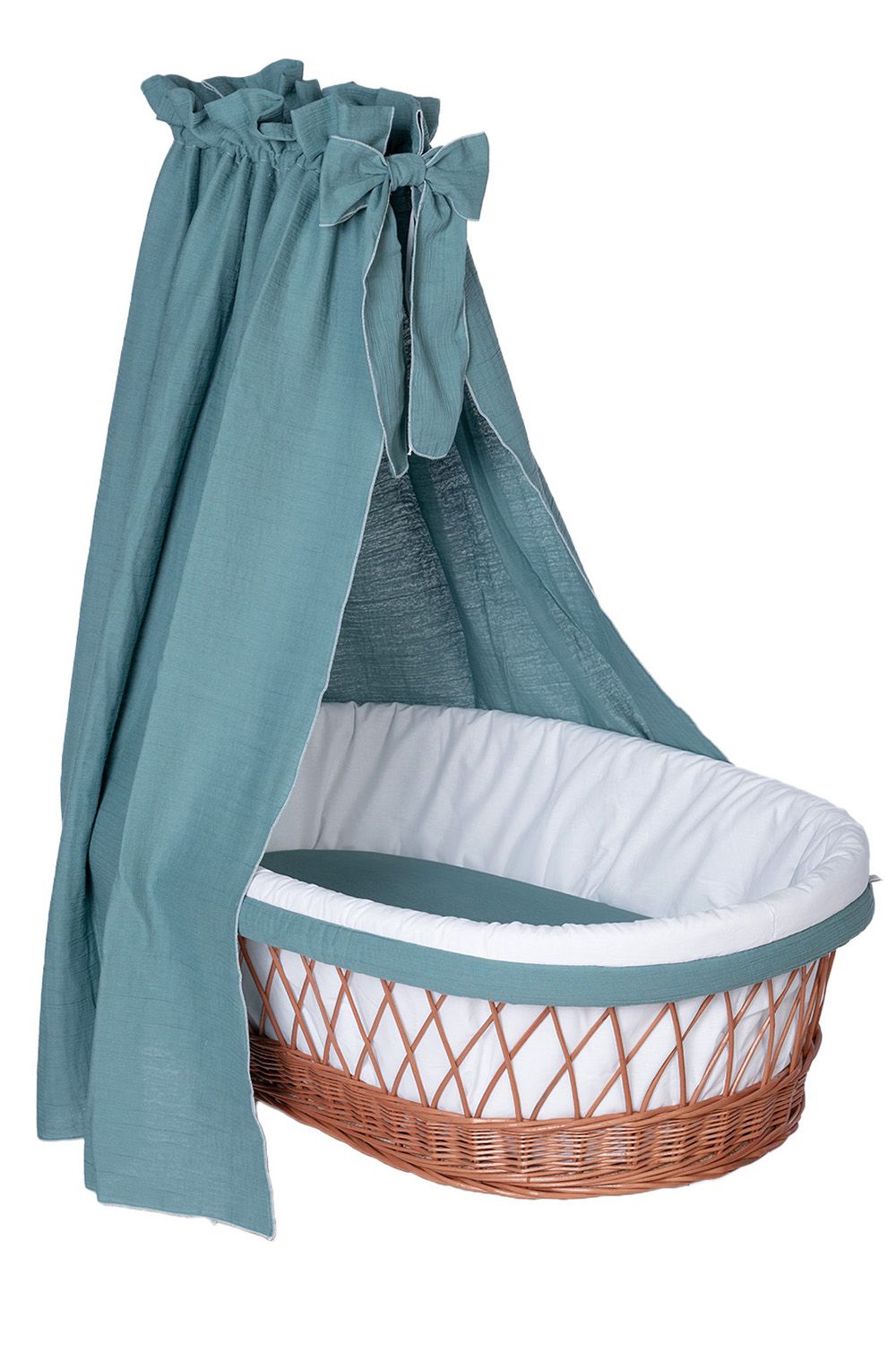 Dieses besondere textile Set eignet sich hervorragend für Ihren Stubenwagen und ist genau auf die Bedürfnisse Ihres Säuglings abgestimmt. Die Kombination mit hochwertigem Musselin bietet einen kuscheligen Schlafplatz für Ihr Baby und schützt es gleichzeitig durch die weiche Wattierung des Polsters. Der im Set enthaltene Stubenwagenhimmel sorgt durch weich fließenden Stoff für gedämpftes Licht und eine ruhige und wohlige Schlafatmosphäre, die besonders für ein Neugeborenes sehr wichtig ist. Die in liebevoller Handarbeit gefertigte Schleife rundet den Himmel ihres Stubenwagens dekorativ ab und sorgt für ein stimmiges Gesamtbild. Dieses komplette textile Set ist die ideale Ausstattung für ihren Stubenwagen. Ein harmonisches Design, kombiniert mit dem Fokus auf die richtige und liebevolle Schlafumgebung Ihres Babys im Stubenwagen.