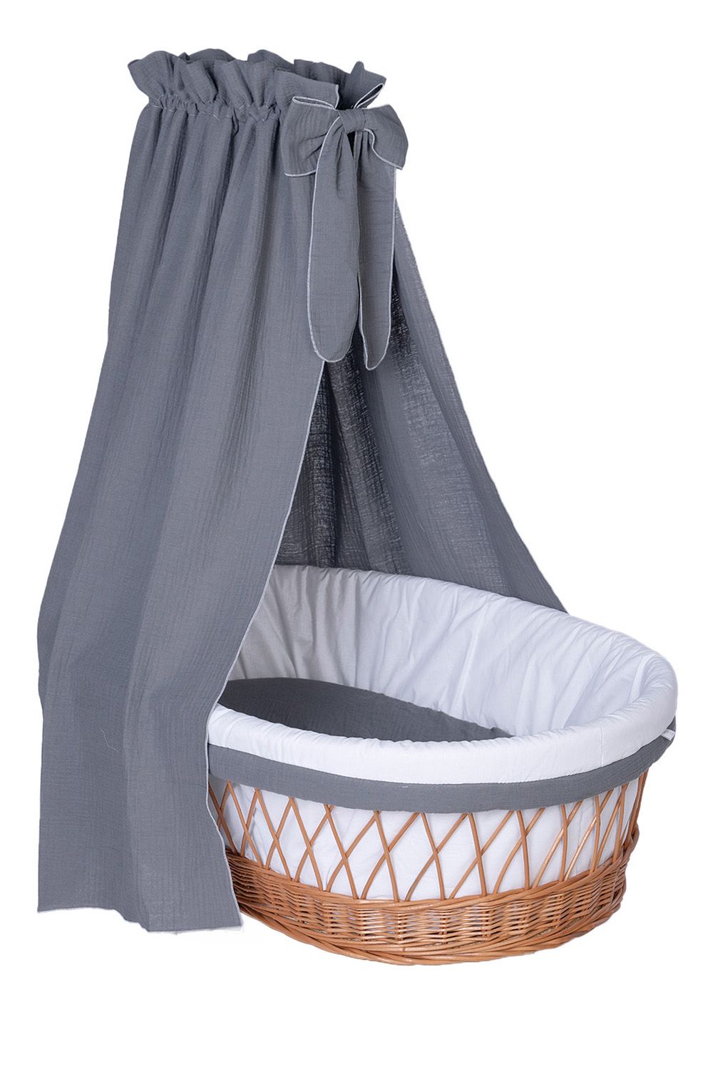 Dieses besondere textile Set eignet sich hervorragend für Ihren Stubenwagen und ist genau auf die Bedürfnisse Ihres Säuglings abgestimmt. Die Kombination mit hochwertigem Musselin bietet einen kuscheligen Schlafplatz für Ihr Baby und schützt es gleichzeitig durch die weiche Wattierung des Polsters. Der im Set enthaltene Stubenwagenhimmel sorgt durch weich fließenden Stoff für gedämpftes Licht und eine ruhige und wohlige Schlafatmosphäre, die besonders für ein Neugeborenes sehr wichtig ist. Die in liebevoller Handarbeit gefertigte Schleife rundet den Himmel ihres Stubenwagens dekorativ ab und sorgt für ein stimmiges Gesamtbild. Dieses komplette textile Set ist die ideale Ausstattung für ihren Stubenwagen. Ein harmonisches Design, kombiniert mit dem Fokus auf die richtige und liebevolle Schlafumgebung Ihres Babys im Stubenwagen.