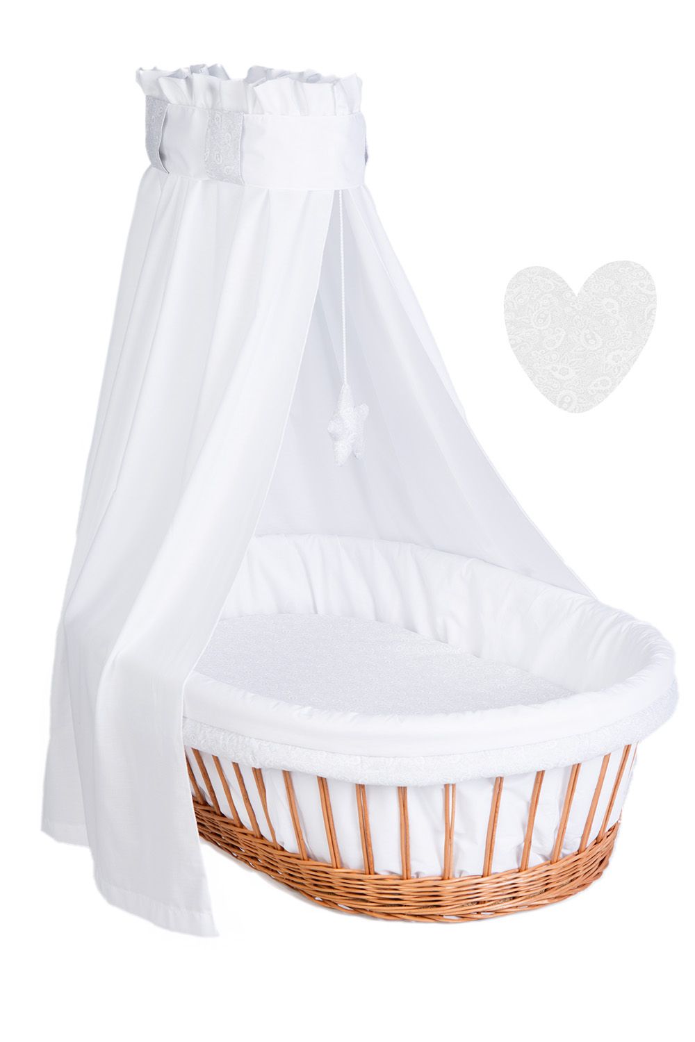 Dieses besondere textile Set eignet sich hervorragend für Ihren Stubenwagen und ist genau auf die Bedürfnisse eines Säuglings abgestimmt. Die weiche Baumwolle bietet einen kuscheligen Schlafplatz für Ihr Baby und schützt es gleichzeitig durch die weiche Wattierung des Polsters. Der im Set enthaltene Himmel sorgt durch den luftig fließenden Stoff für gedämpftes Licht und eine ruhige und wohlige Schlafatmosphäre, die besonders für ein Neugeborenes sehr wichtig ist. Das dazugehörige Mobile rundet das Gesamtbild Ihres Stubenwagens dekorativ ab. Da mit zunehmendem Alter die Wahrnehmung und das Interesse Ihres Babys für die Umgebung steigt, besteht auch die Möglichkeit den Himmel abzunehmen. Dieses komplette textile Set ist die ideale Ausstattung für Ihren Stubenwagen. Ein harmonisches Design, kombiniert mit dem Fokus auf die richtige und liebevolle Schlafumgebung Ihres Babys im Stubenwagen.