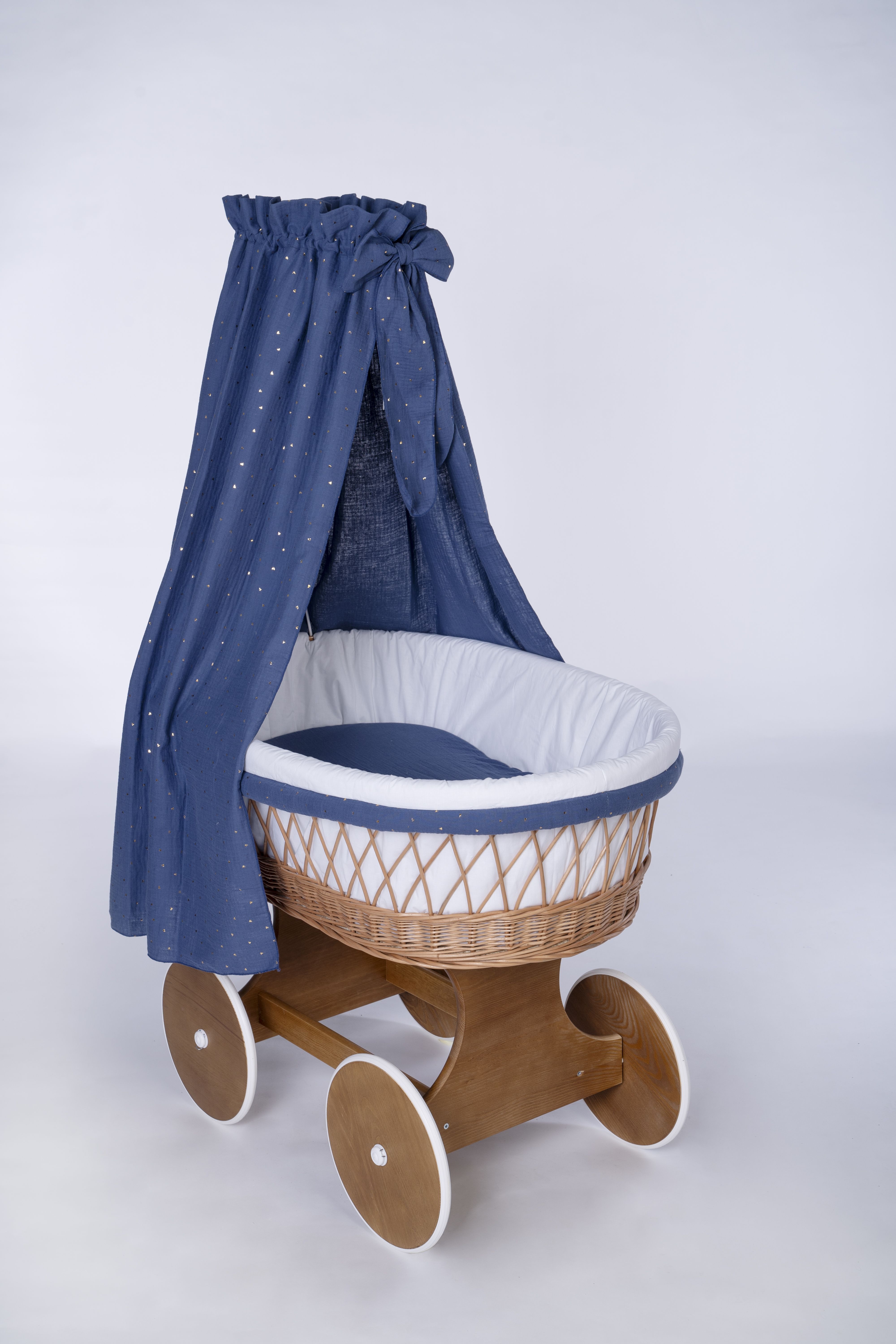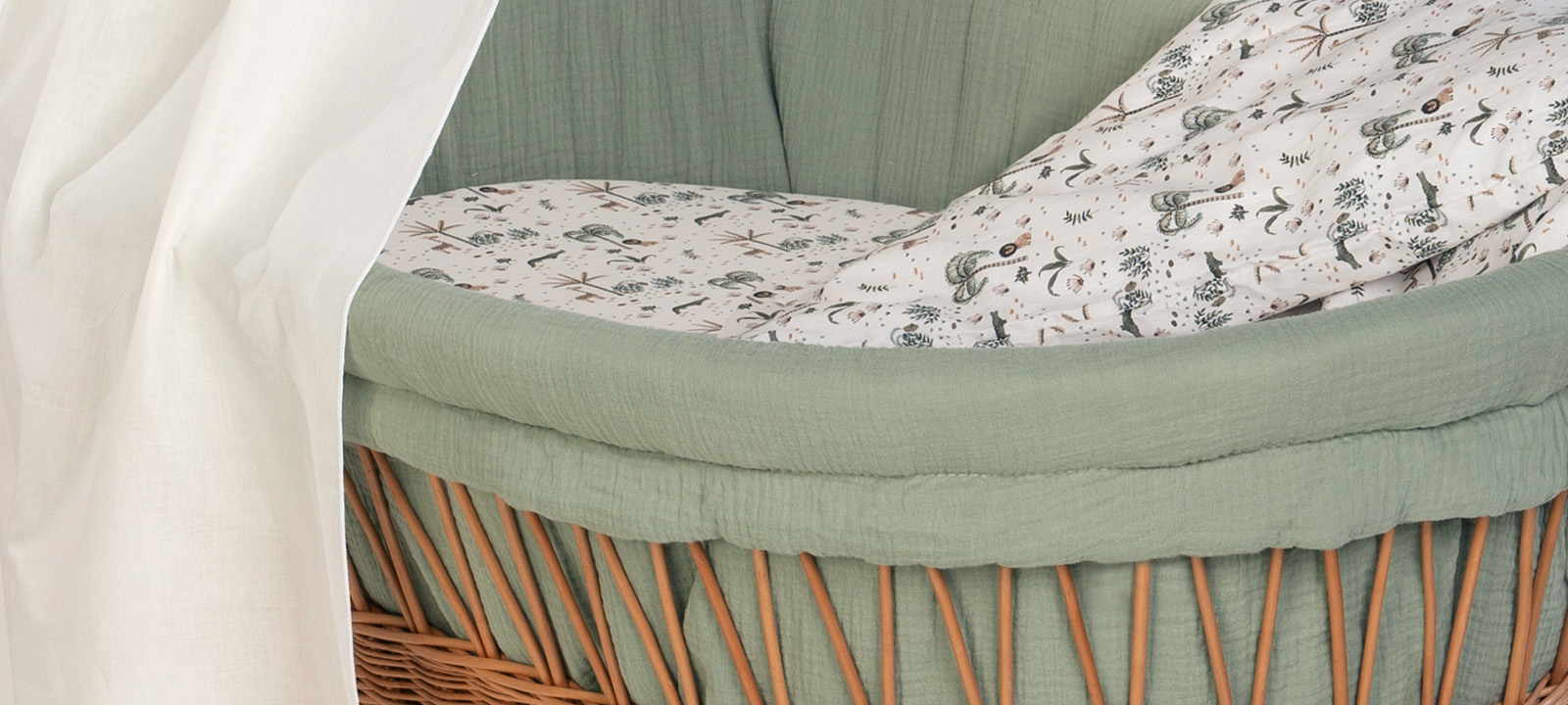 Die textilen Sets aus weicher Bio-Baumwolle und hochwertigem Musselin werden in unserer Manufaktur in Bayern entworfen und genäht. Sie sorgen für ein kuscheliges Nest und schützen durch die Wattierung des Polsters den Schlaf des Babys. Mit dem fließenden Stoff des zusätzlich wählbaren Himmels schaffen sie ein gedämpftes Licht. All unsere Materialien sind zertifiziert und in verschiedenen Ausführungen wählbar.
