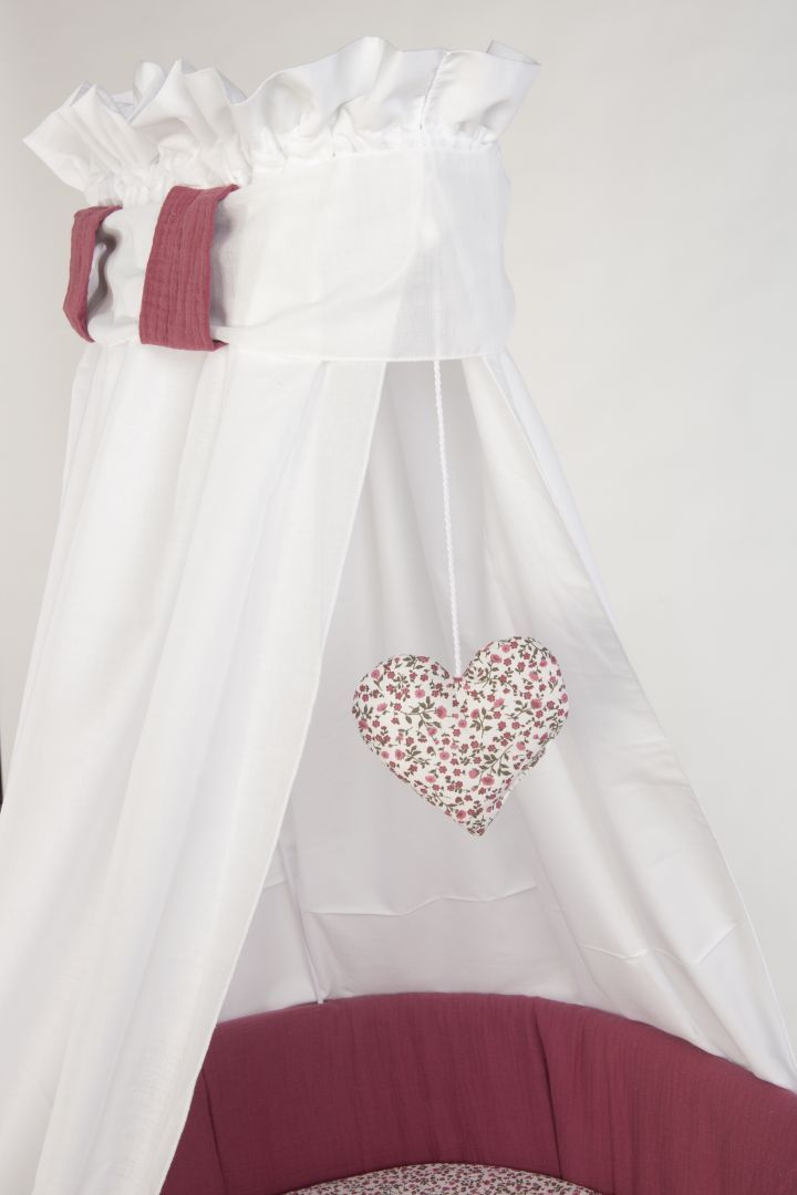 Die Kombination mit dem vollständigen textilen Set aus weicher Bio-Baumwolle schafft ein harmonisches Design. Der fließende Stoff des Himmels sorgt für gedämpftes Licht und eine ruhige Schlafatmosphäre, die Wattierung des Polsters schützt vor dem Anstoßen. Das Set ist somit genau auf die Bedürfnisse des Säuglings abgestimmt und wird komplett in unserer Manufaktur in Deutschland entworfen und gefertigt.