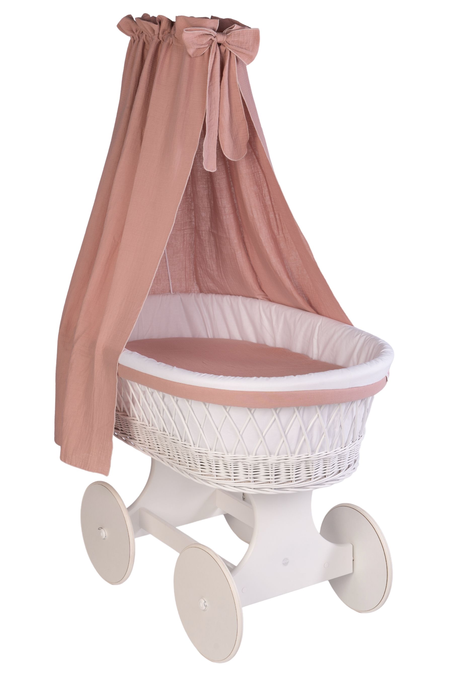 Das vollständige textile Set schafft durch die Kombination aus weicher Bio-Baumwolle und hochwertigem Musselin ein harmonisches Design. Der fließende Stoff des Himmels sorgt für gedämpftes Licht und eine ruhige Schlafatmosphäre, die Wattierung des Polsters schützt vor dem Anstoßen. Das Set ist somit genau auf die Bedürfnisse des Säuglings abgestimmt und wird komplett in unserer Manufaktur in Deutschland entworfen und gefertigt.