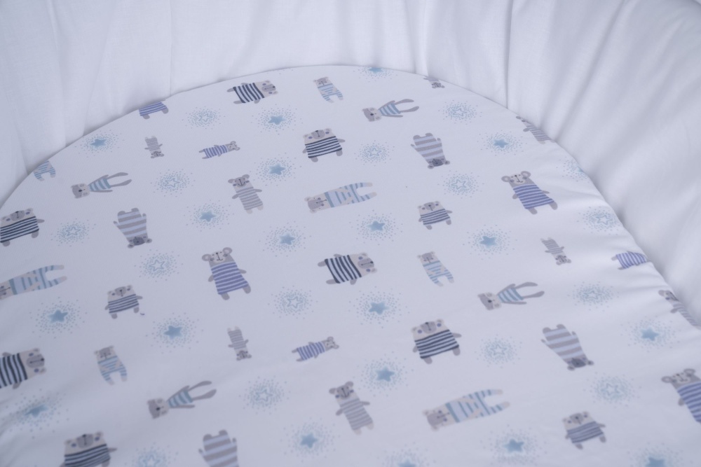 Stubenwagen Maxi weiß, Pyjamabär blau