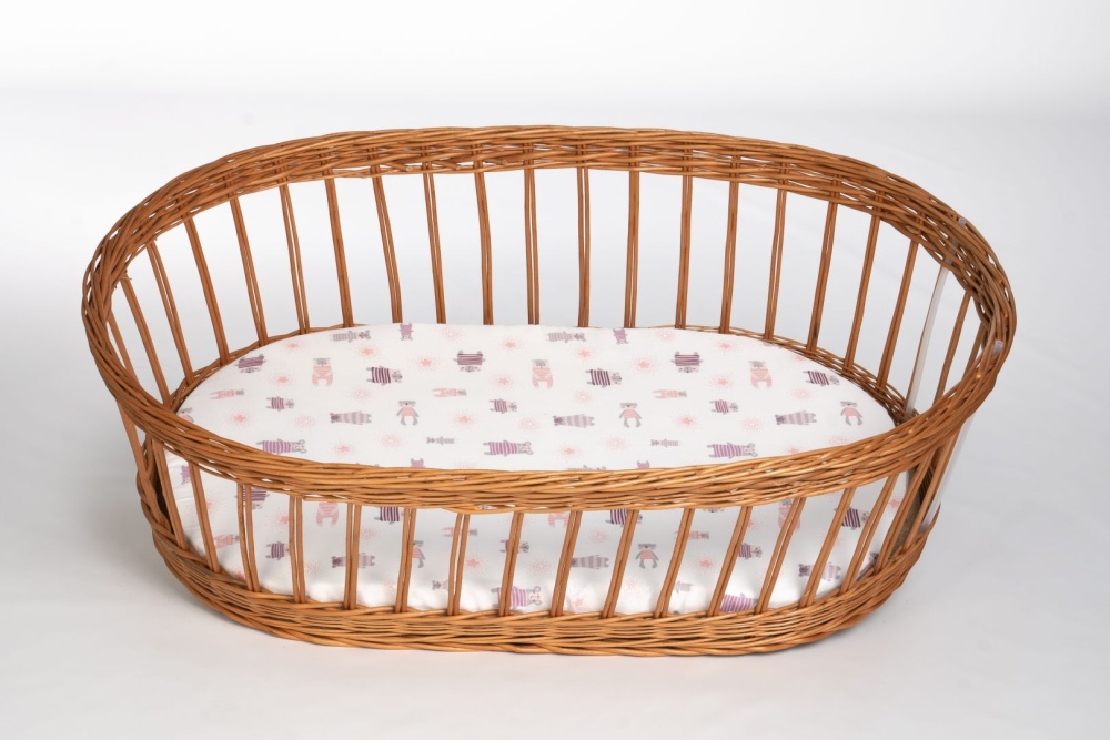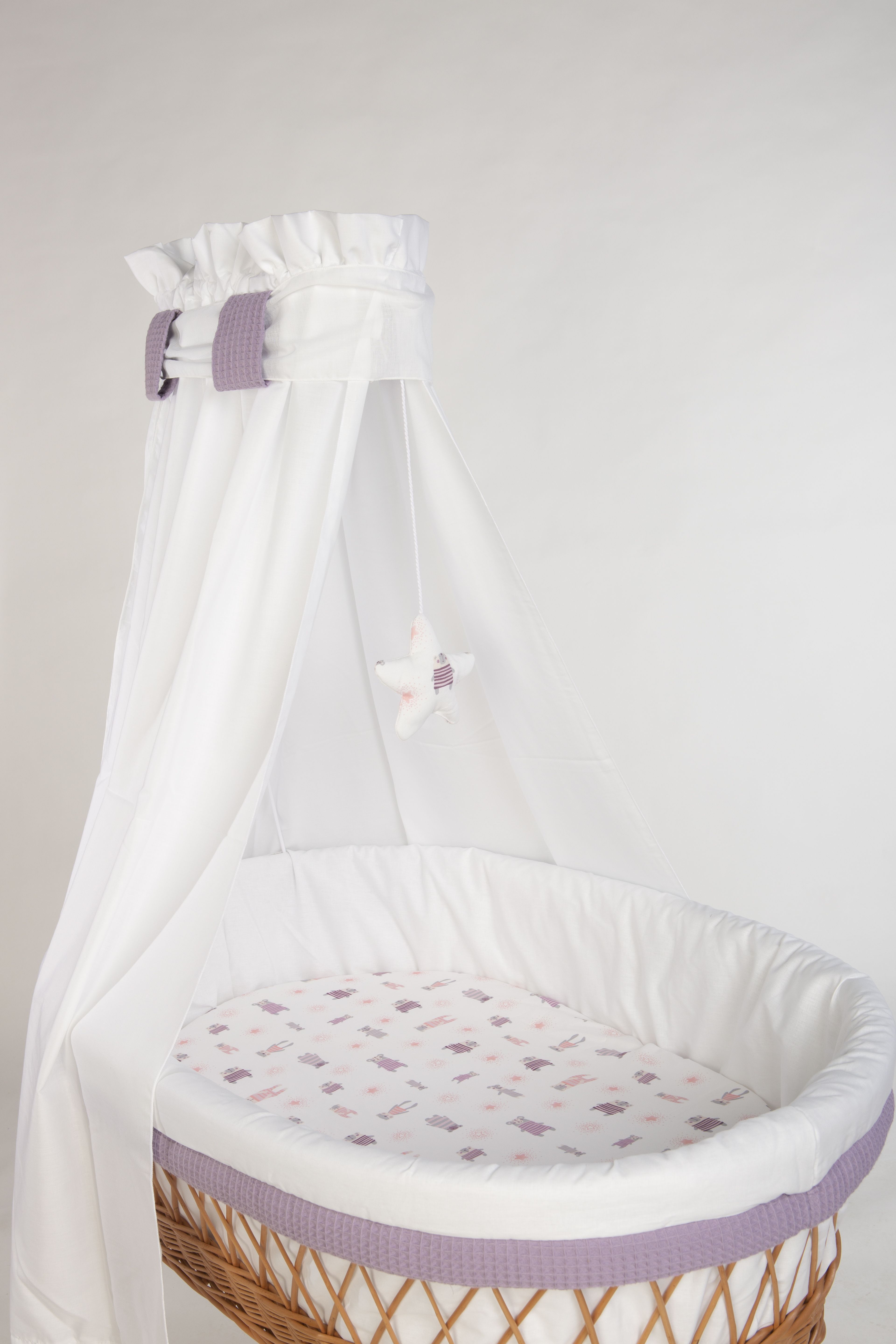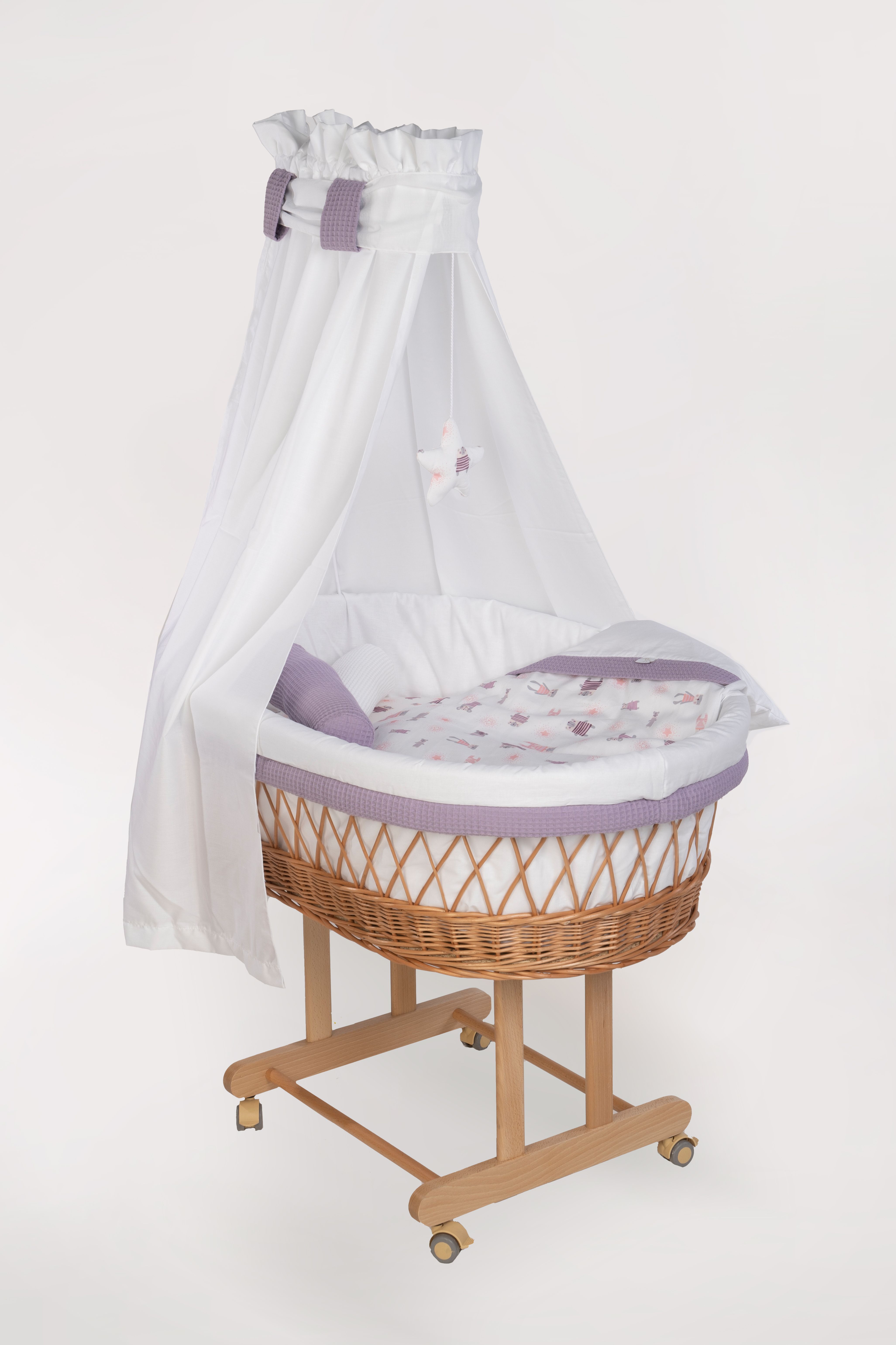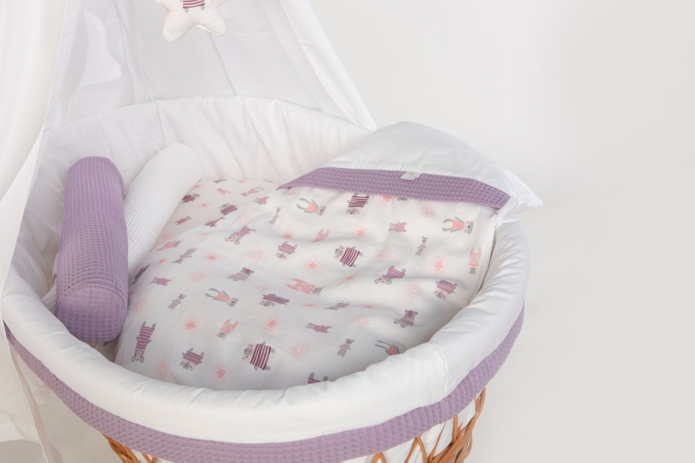 Stubenwagen Maxi mit Bettwäsche natur, Pyjamabär flieder