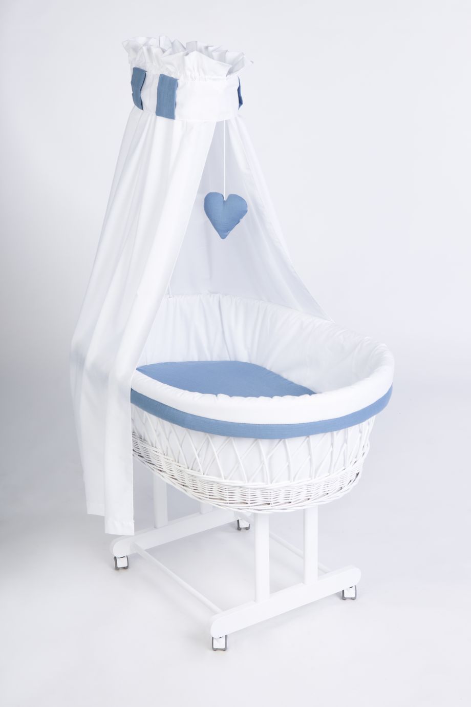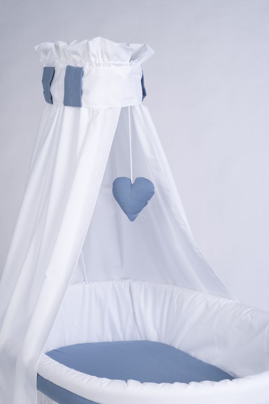 Stubenwagen Maxi weiß, Blau Musselin