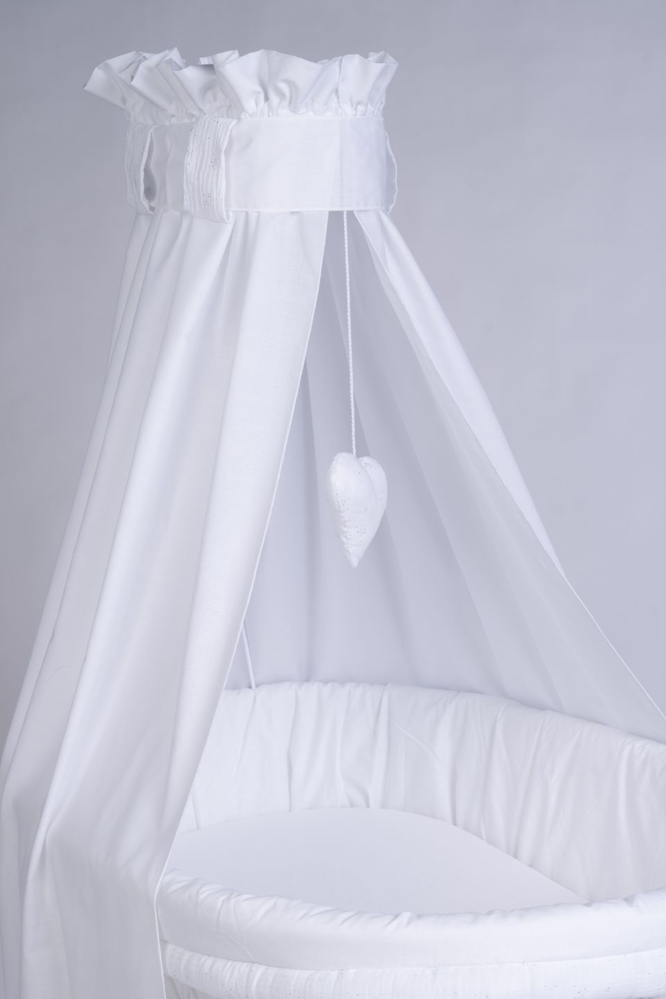 Die Kombination mit dem vollständigen textilen Set aus weicher Bio-Baumwolle schafft ein harmonisches Design. Der fließende Stoff des Himmels sorgt für gedämpftes Licht und eine ruhige Schlafatmosphäre, die Wattierung des Polsters schützt vor dem Anstoßen. Das Set ist somit genau auf die Bedürfnisse des Säuglings abgestimmt und wird komplett in unserer Manufaktur in Deutschland entworfen und gefertigt.