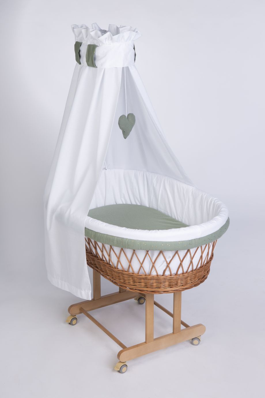 Die Kombination mit dem vollständigen textilen Set aus weicher Bio-Baumwolle schafft ein harmonisches Design. Der fließende Stoff des Himmels sorgt für gedämpftes Licht und eine ruhige Schlafatmosphäre, die Wattierung des Polsters schützt vor dem Anstoßen. Das Set ist somit genau auf die Bedürfnisse des Säuglings abgestimmt und wird komplett in unserer Manufaktur in Deutschland entworfen und gefertigt.